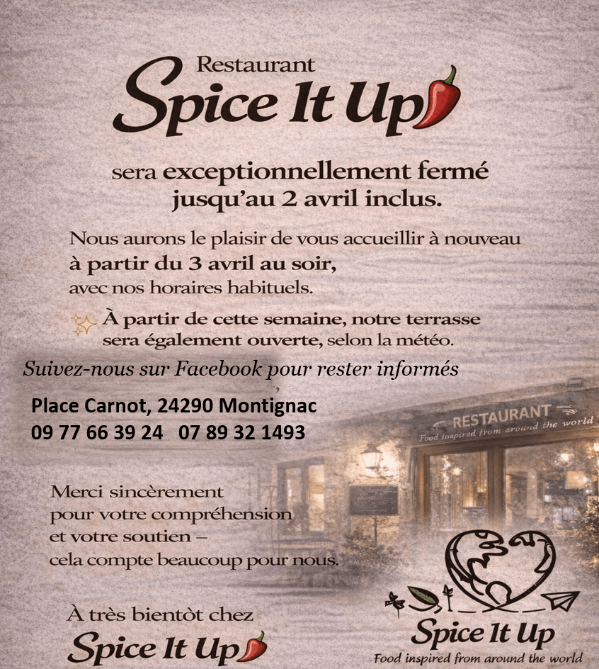Bienvenue dans notre restaurant à Montignac, en Dordogne. Nous servons des plats inspirés des quatre coins du monde, préparés avec des ingrédients frais et de saison provenant de producteurs locaux. Chaque repas est une invitation à un voyage culinaire, permettant à nos clients de découvrir des saveurs authentiques, allant des spécialités méditerranéennes aux délices asiatiques. Nous mettons un point d’honneur à offrir un service attentif et convivial, afin que votre expérience soit inoubliable.